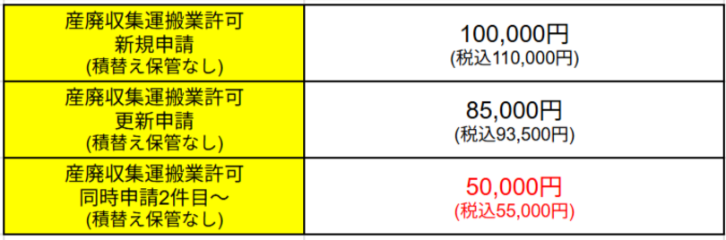 ※産廃収集運搬業許可申請の際、⾃治体によっては直近年度で債務超過や繰越剰余⾦のマイナスがある場合に中小企業診断士や会計⼠等による収⽀計画書の作成が必要になる場合があります。代行報酬には当該費⽤は含まれておりませんので予めご承諾ください。