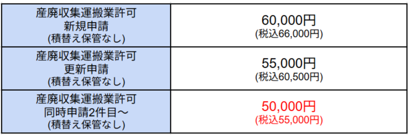 ※上記のほか、行政庁に支払う法定費用が新規申請で81,000円、更新申請で73,000円申請時にかかります。